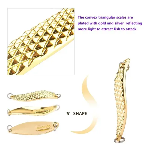 ¡10 SEÑUELOS EN UN SOLO KIT! Perfecta variedad de acabados y texturas en oro y plata para maximizar tus opciones.