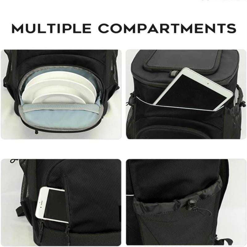 • Compartimentos Inteligentes: Dos secciones térmicas principales para separar alimentos secos de bebidas, más bolsillos laterales de red y un bolsillo frontal amplio.