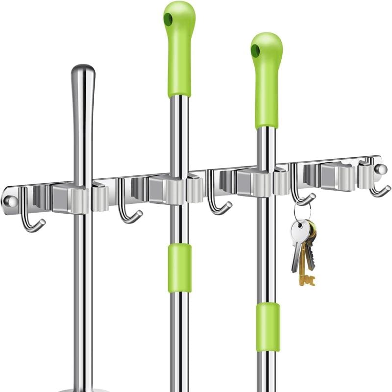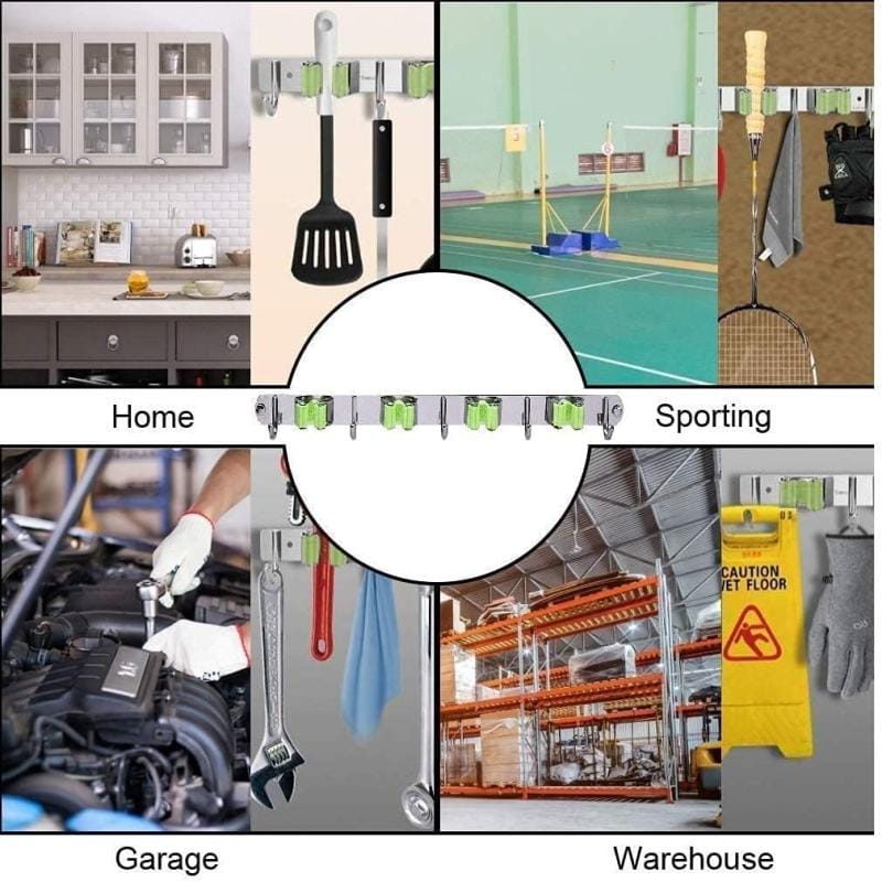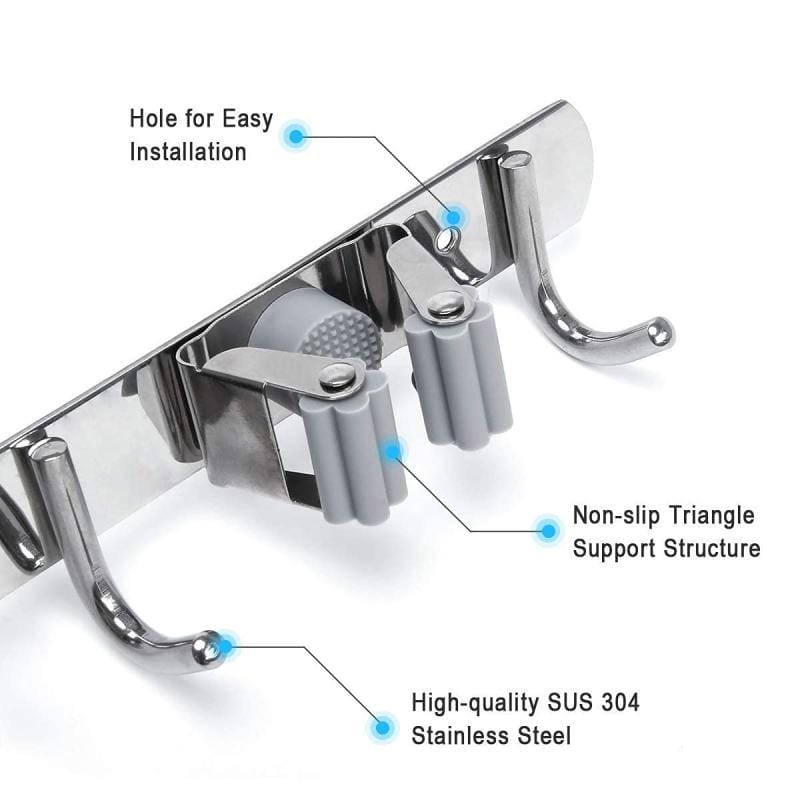 Organizador Soporte Cuelga Escobas Acero Inoxidable Ganchos
