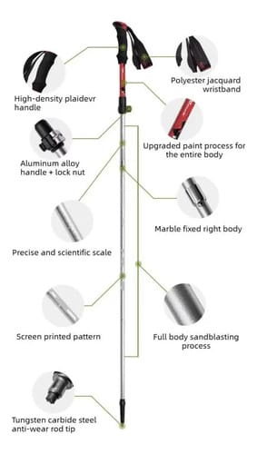 • El tapón de goma no está pensado para el trekking ya que al ser de goma se desgasta. Su uso es principalmente para el guardado (de esa forma evitamos dañar la mochila), o si se utiliza como bastón de apoyo en un suelo delicado (piso flotante, porcelanato, etc). En montaña no es necesario ni se recomienda usar la punta de goma