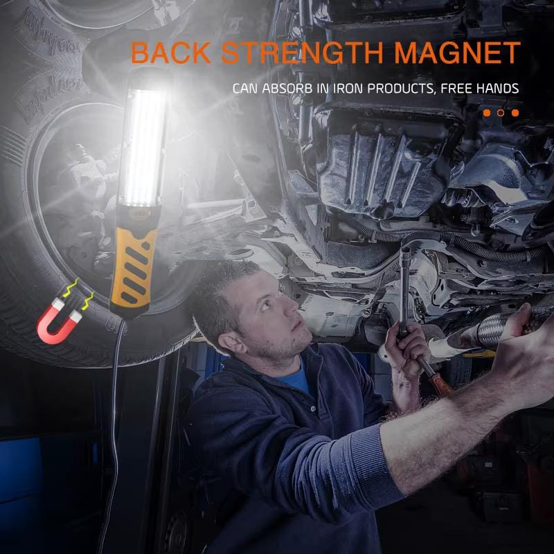 • Gracias al imán en la parte posterior de la carcasa, la luz se puede colocar en el interior del capó , al cambiar neumáticos cerca del paso de rueda o donde la necesites.