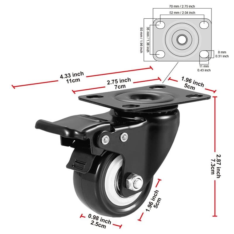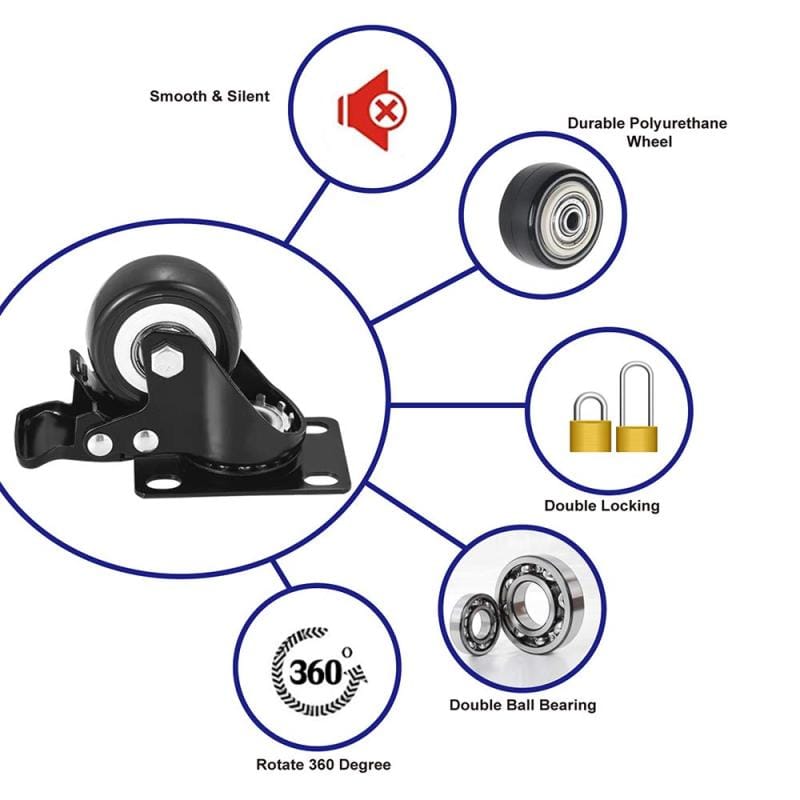 Rueda Giratoria 50mm Reforzada 70kg Doble Ruleman Con Freno